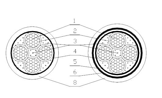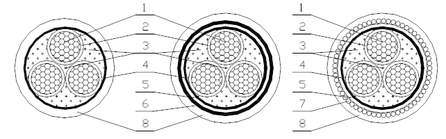 5隔離套(內(nèi)襯層)) 6鎧裝鋼帶 7鎧裝鋼絲 8外護套