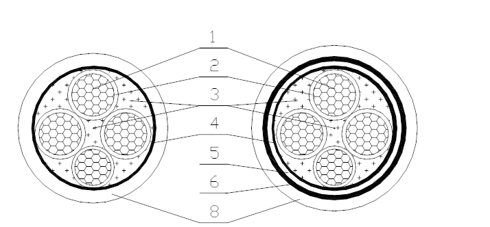 | 各種型號電纜的橫截面結(jié)構(gòu)示意圖如圖1所示。 |